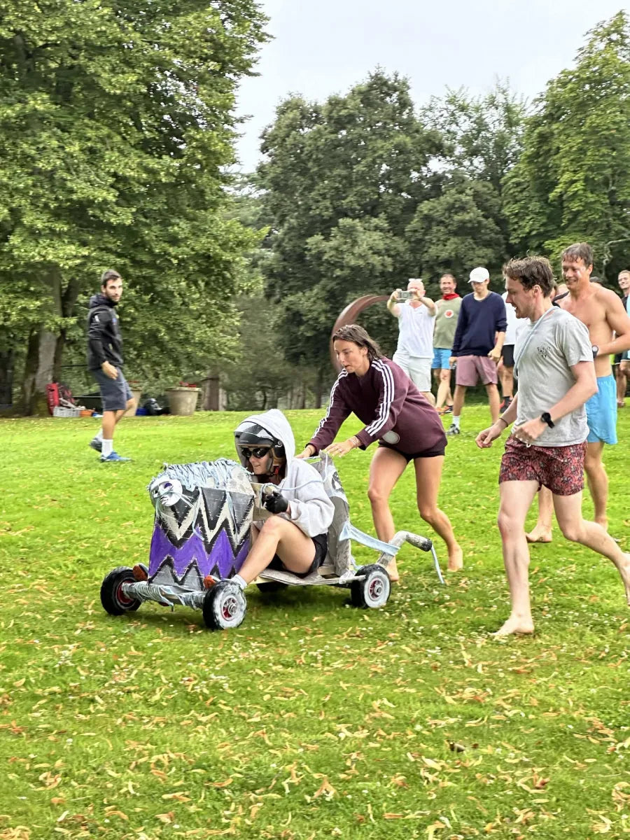 Une fois votre voiture en bois assemblée, place à l’action ! Dorénavant vous aurez l’opportunité de tester votre bolide sur un circuit spécialement aménagé avec des bottes de foin. Ce parcours sinueux recrée l’ambiance d’une véritable course, offrant à chacun l'occasion de se mettre dans la peau d’un pilote de course. Des sensations fortes garanties, mais en toute sécurité ! Les participants pourront s’essayer à différentes manœuvres, découvrir les joies de la vitesse, et vivre des moments de pure adrénaline en Bretagne.